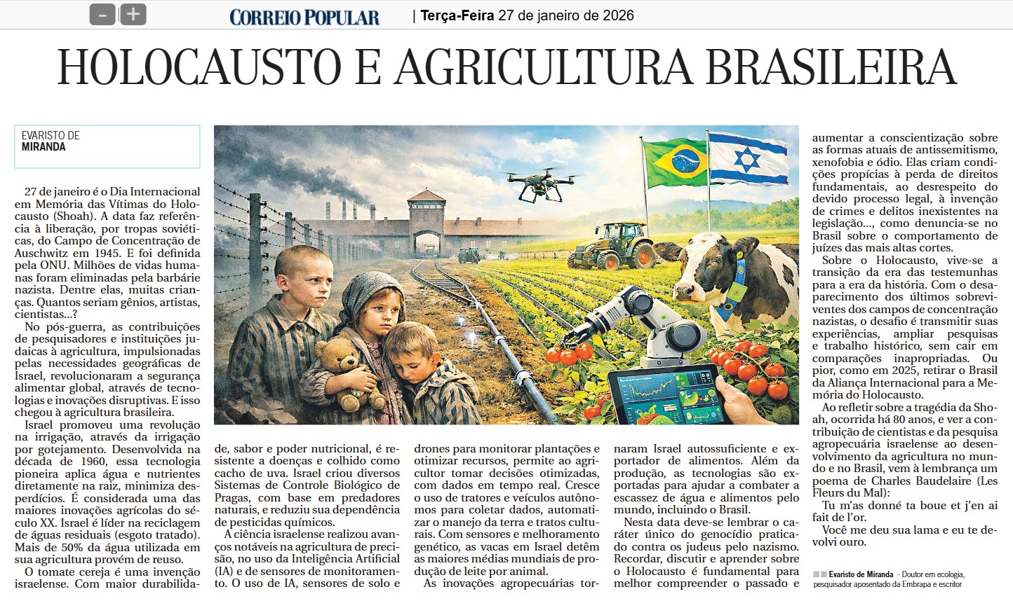 Miranda, E. E. de. Holocausto e agricultura brasileira. Correio Popular. Campinas – SP, 27 de janeiro de 2026. https://correiodigital.rac.com.br/jornal.php?0cc175b9c0f1b6a8=1869 https://evaristodemiranda.com.br/wp-content/uploads/2026/01/Holocausto-e-a-agricultura-brasileira.jpeg