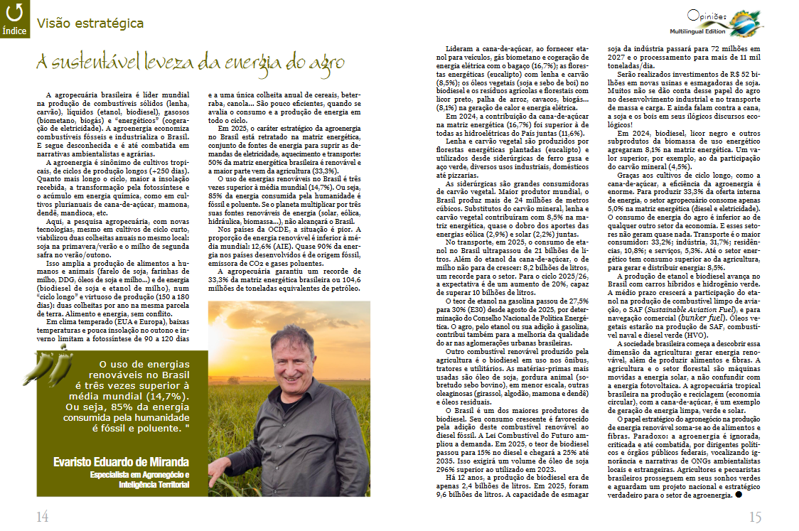 Miranda, E. E. de. A sustentável leveza da energia do agro. Rev. Opiniões. Ribeirão Preto- SP, Fev-Abr de 2026. https://sucroenergetico.revistaopinioes.com.br/pt-br/revista/leitura/online/resiliencia-e-competencia-do-sistema-sucroenergeti/ https://evaristodemiranda.com.br/wp-content/uploads/2026/03/A-Sustentavel-Leveza-da-Energia-do-Agro.png