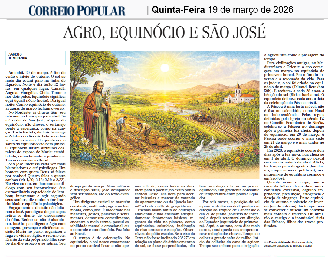 Miranda, E. E. de. Agro, Equinócio e São José. Correio Popular. Campinas – SP, 19 de março de 2026. https://correiodigital.rac.com.br/jornal.php?0cc175b9c0f1b6a8=1996 https://evaristodemiranda.com.br/wp-content/uploads/2026/03/Agro-equinocio-e-Sao-Jose-Correio-Popular.png